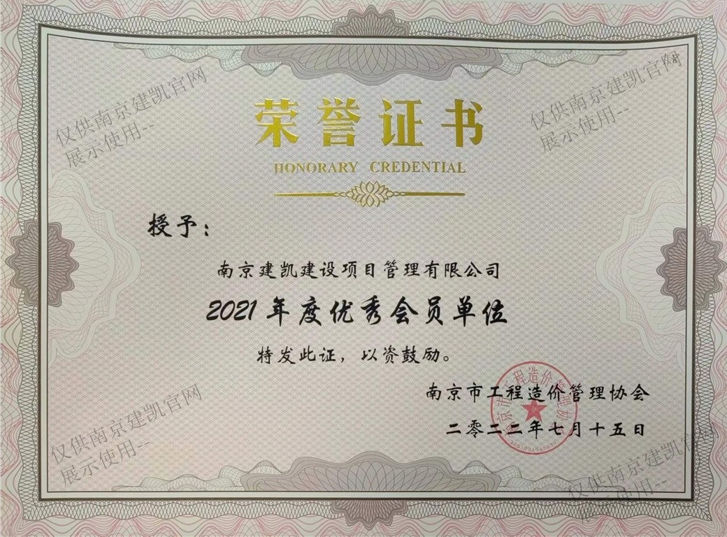 祝贺我司荣获南京市众博官网造价管理协会“2021年度优秀会员单位”