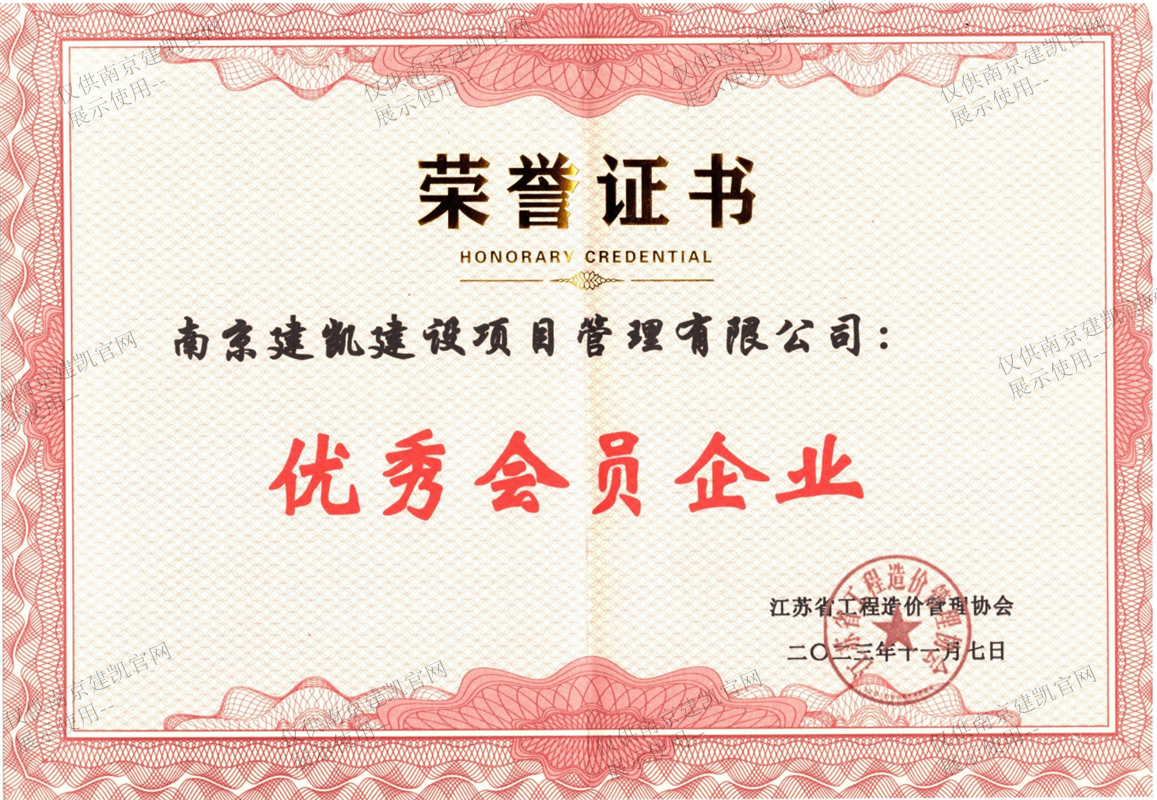 热烈祝贺我司荣获江苏省众博官网造价管理协会“优秀会员企业”