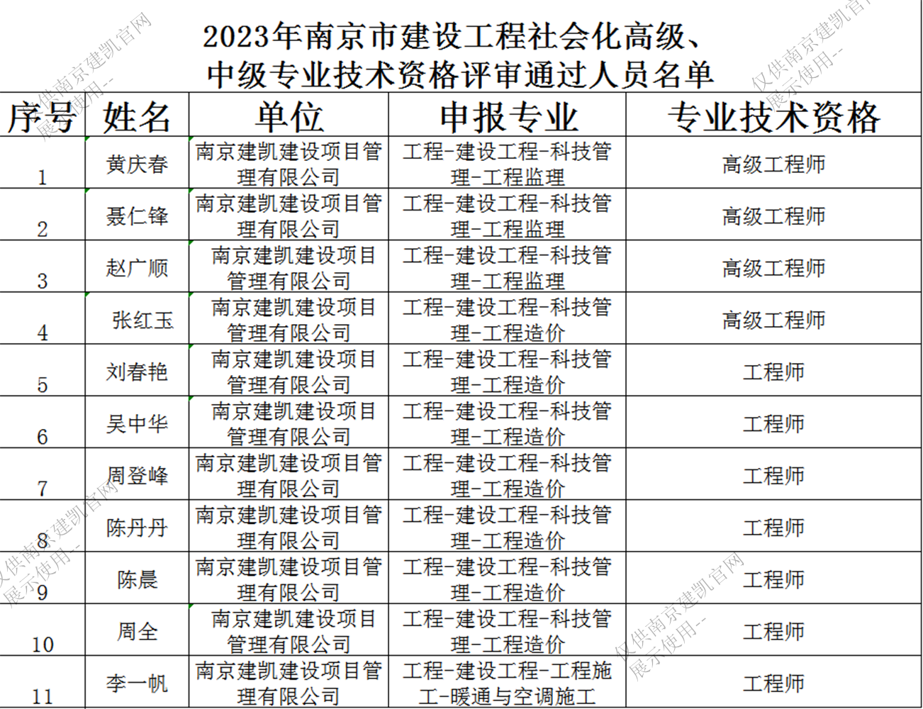恭喜我司以下人员通过2023年南京市建设众博官网社会化高级、 中级专业技术资格评审