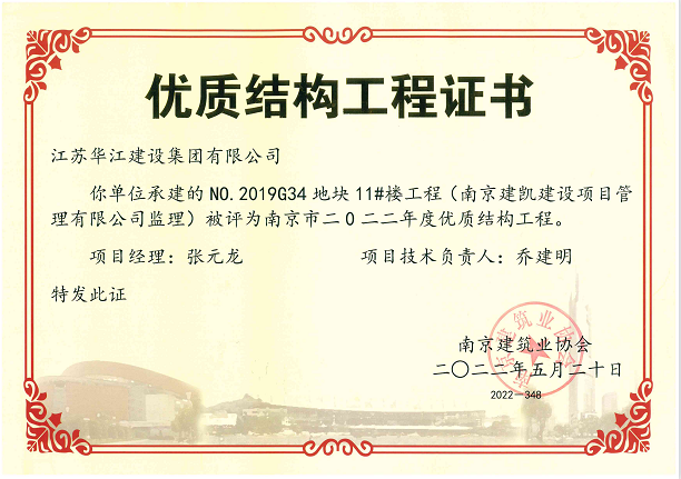 (2022年5月20日)NO.2019G34项目7#楼、10#楼、11#楼荣获《南京市2022年度优质结构众博官网》