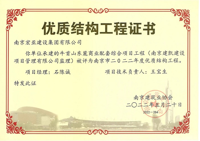 (2022年05月20日)牛首山东麓商业配套综合项目荣获《南京市2022年度优质结构众博官网》