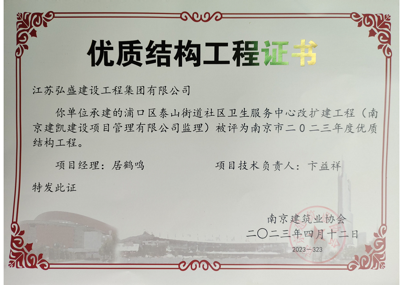 浦口区泰山街道社区卫生服务中心改扩建众博官网荣获“2023年度优质结构众博官网”
