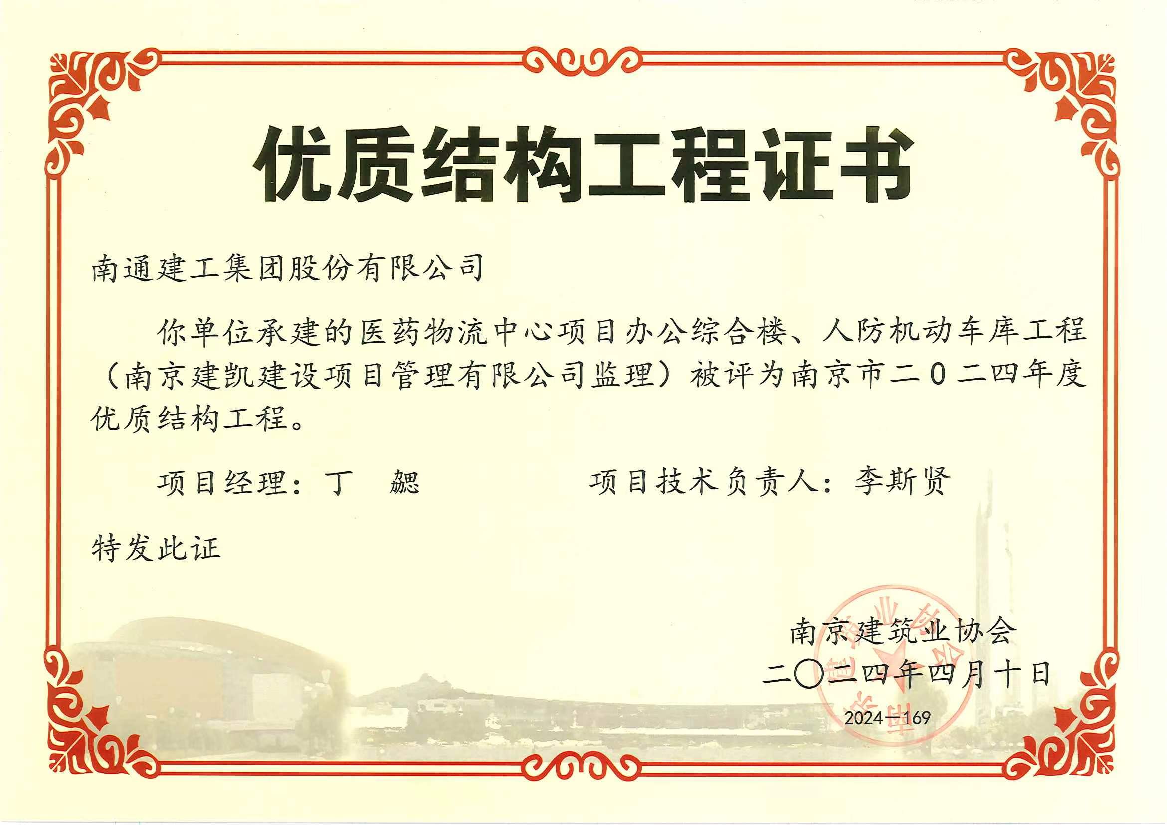医药物流中心项目办公综合楼、人防机动车库众博官网荣获“南京市优质众博官网奖”