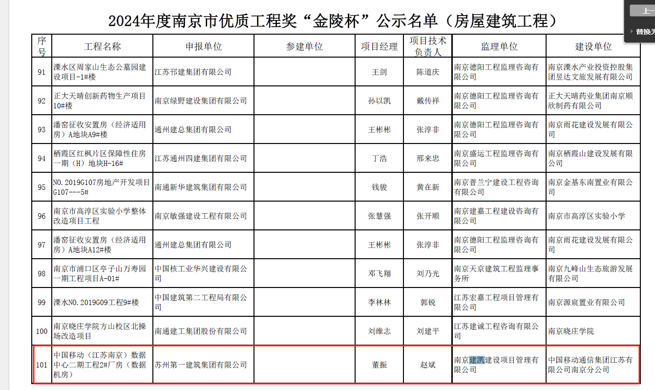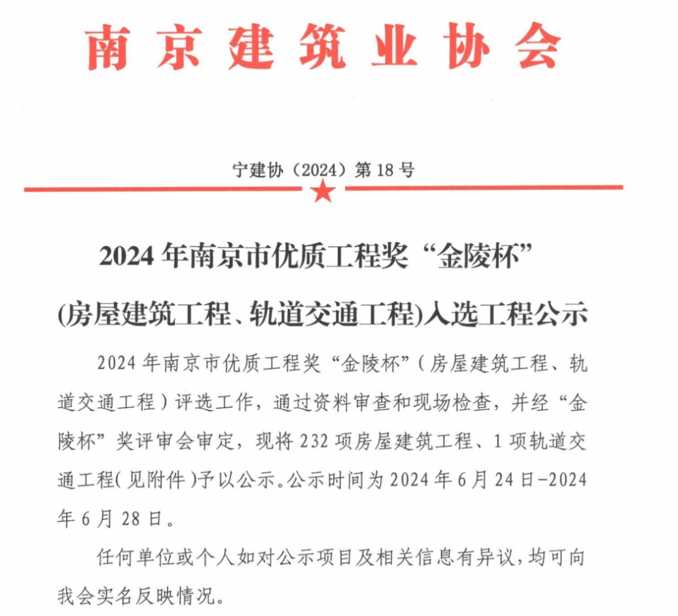 2024年南京市优质众博官网奖“金陵杯”入选公示
