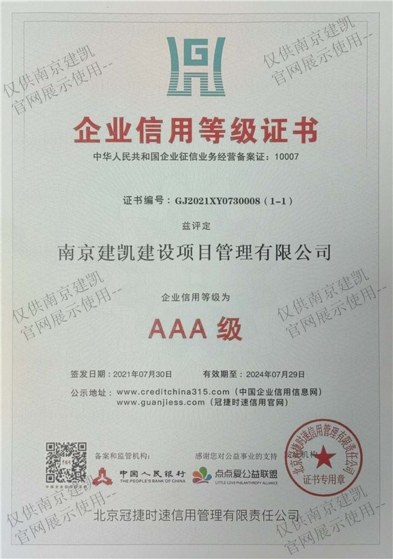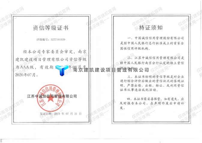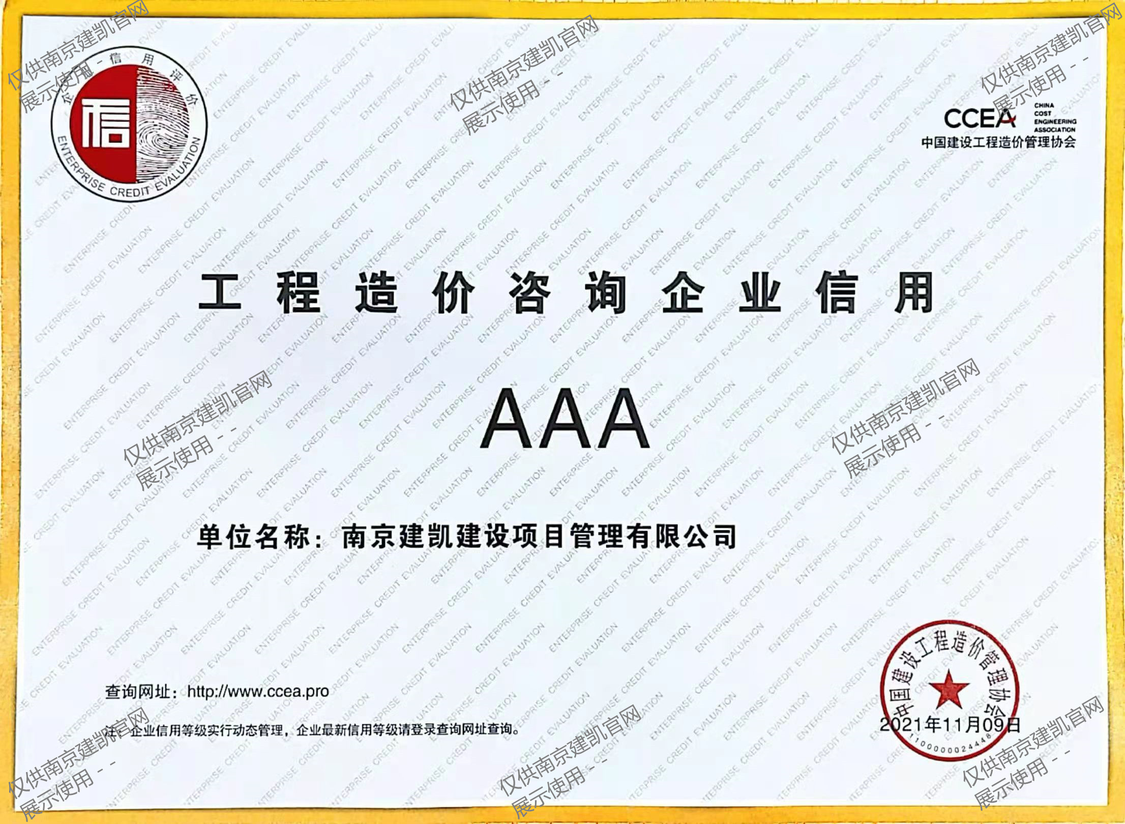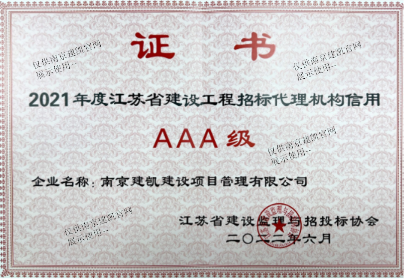 2021年度江苏省建设众博官网招标代理机构信用“AAA”等级认证